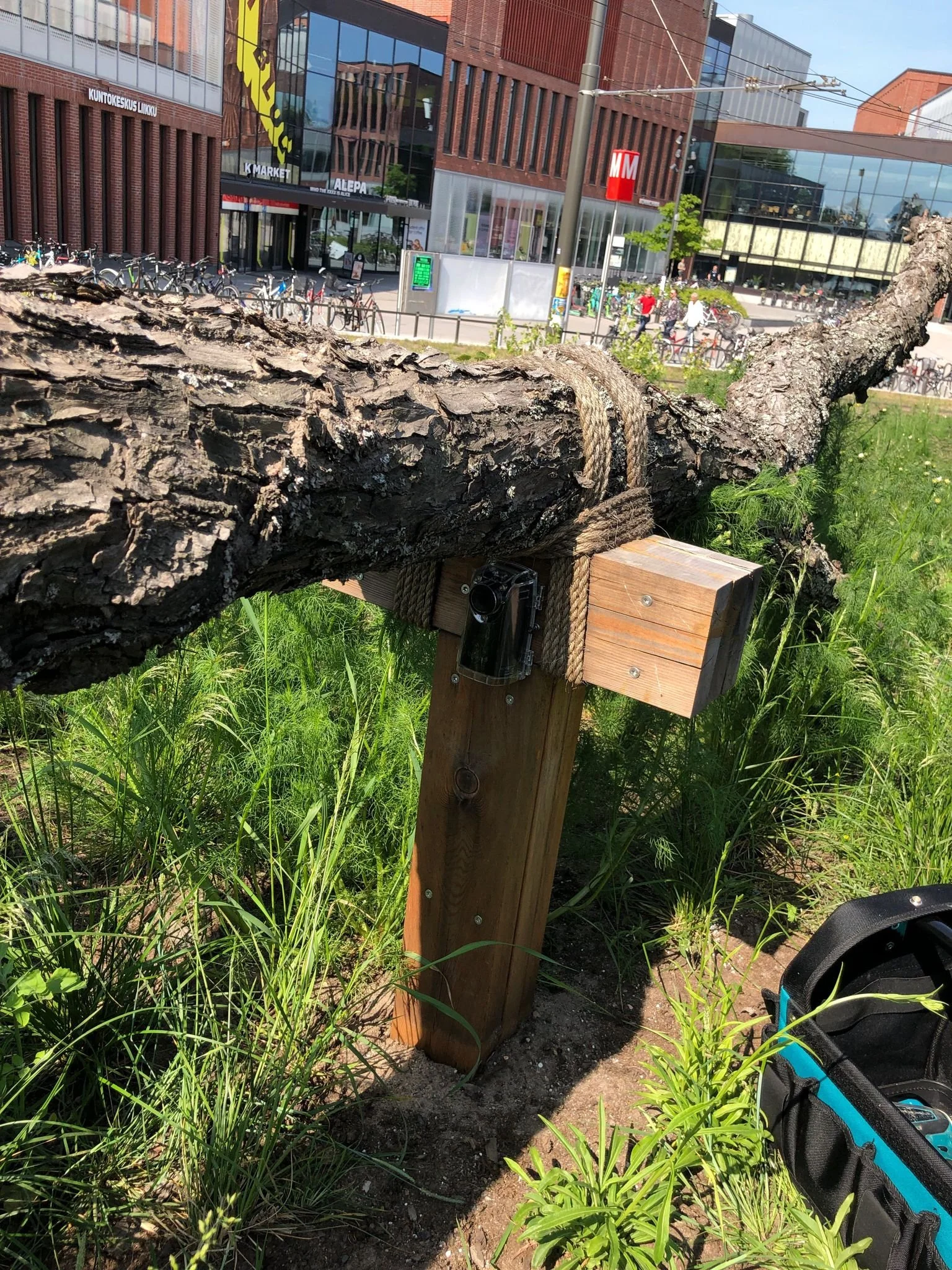 Site thirteen is located in Aalto University, Finland and operated in collaboration with Open Forest Collective. The network camera is situated amidst a decaying wood artwork in the University’s Otaniemi campus, which is made up of two old linden tree trunks in poor condition. Although the old trees had received many measures to preserve them, including several tree surgeries, condition studies established that they were rotten and a safety risk for the environment.